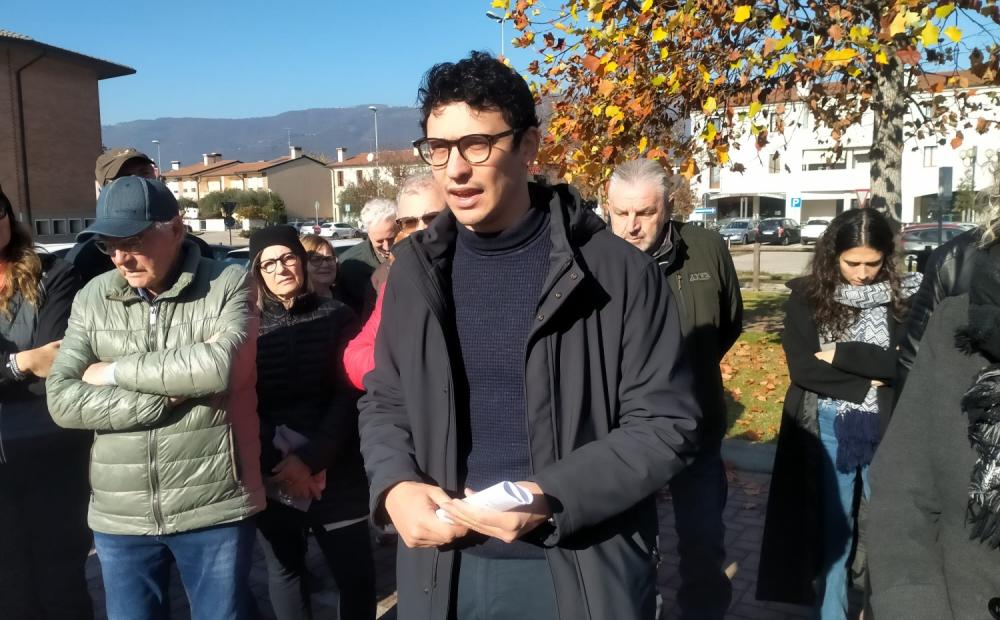 In via Colombi, laterale di strada Cartigliana, dove la società telefonica Iliad aveva già installato le transenne del cantiere dell’antenna ovvero stazione radiobase, assieme a Facchin si era radunato un gruppo di residenti della zona.