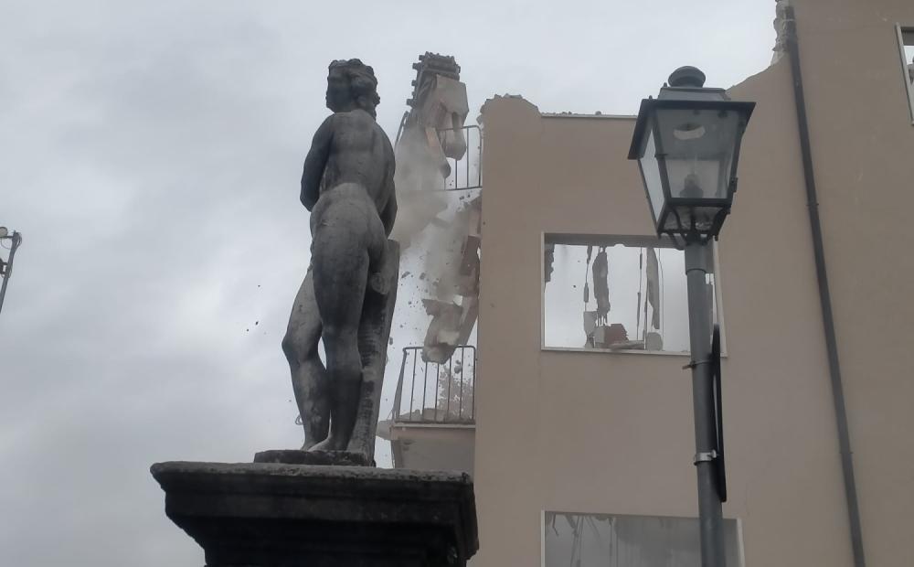 Il tutto mentre le statue, anzi le belle statuine sopra i muri che attorniano l’area di cantiere, testimonianza artistica del glorioso passato di questo punto della città, sembrano quasi assistere impotenti alla spettacolare scena.