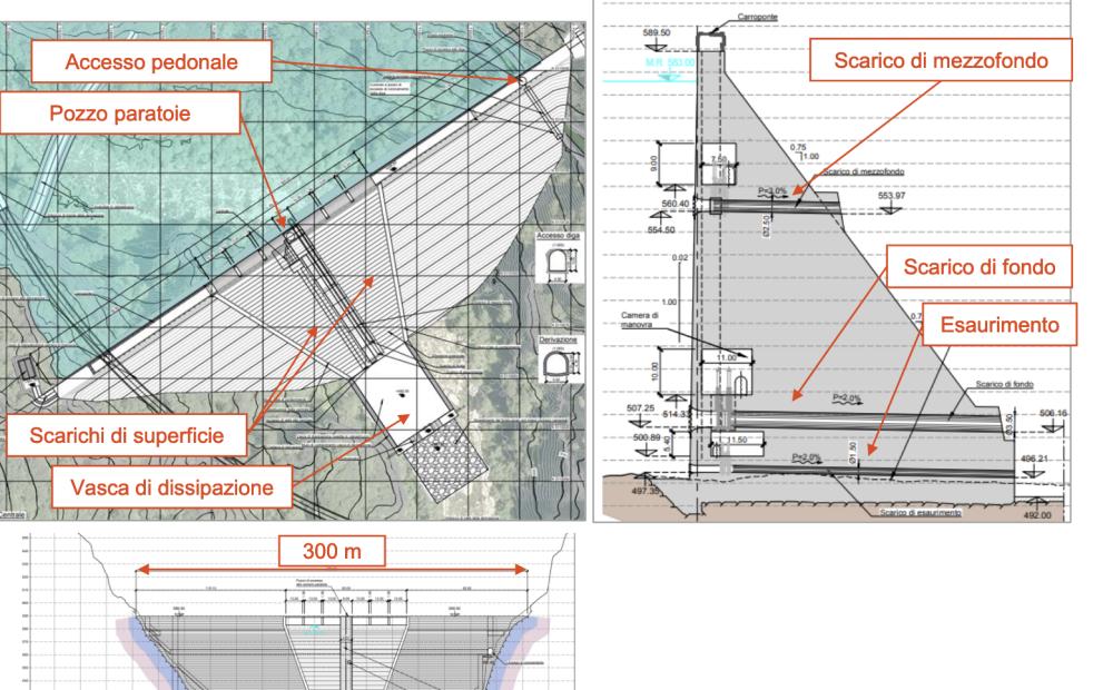 Una delle quattro alternative progettuali della diga del Vanoi contenute nel DOCFAP