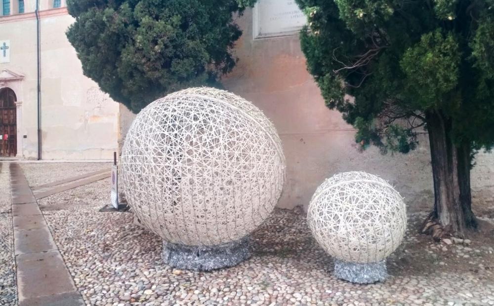 Oltre alle “due palle” originali già installate sul Ponte, al Castello Park Garage degli Ezzelini ne sono state infatti aggiunte altre due, ai due lati dell’ingresso della “casa di Babbo Natale” nel locale della biglietteria di Operaestate.