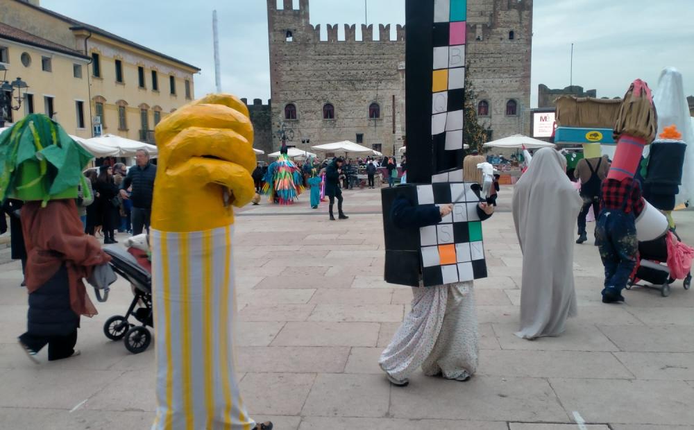 Una sfilata di strane e coloratissime creature fa la sua comparsa da Porta Vicenza per iniziare un giro tra le vie circostanti che poi si concluderà, di ritorno in piazza, sopra la celebre scacchiera.
