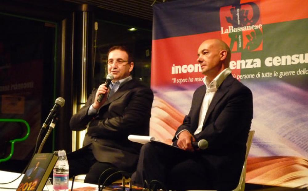 Roberto Giacobbo e Marco Bernardi durante l'incontro.
