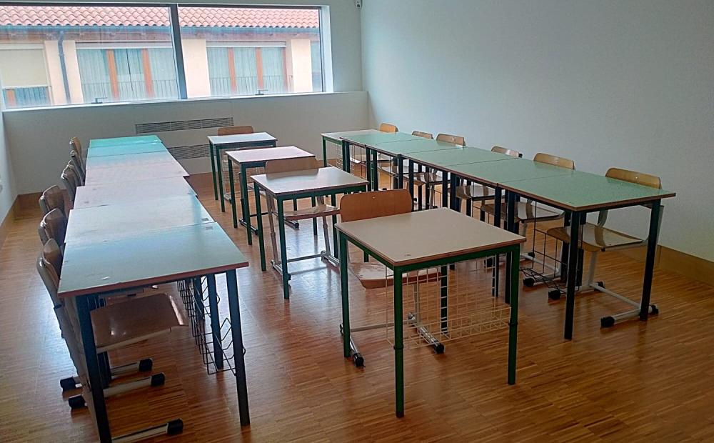 Ne ho approfittato per entrare a dare un’occhiata: due classi sono state allestite in fondo al corridoio centrale del piano terra.