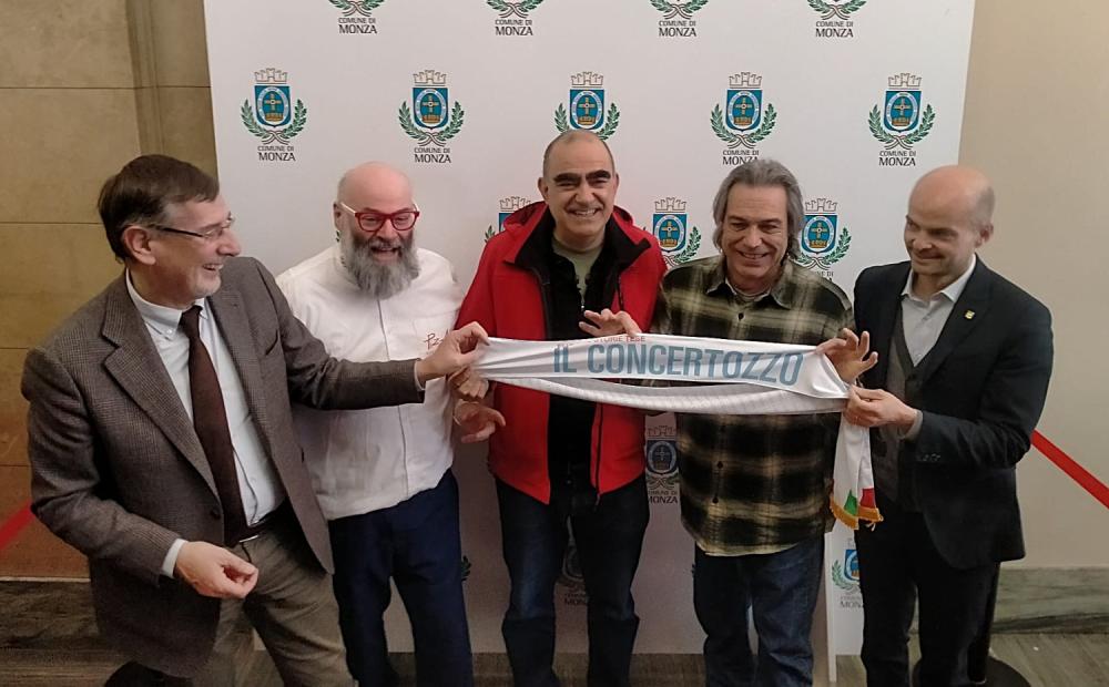 “Il Concertozzo è nato a Bergamo come festa di fine pandemia, un appello accorato che ci era arrivato dal Trio Medusa, mentre noi eravamo un gruppo sciolto”, spiega Elio nella conferenza stampa convocata nella sala consiliare del municipio di Monza.