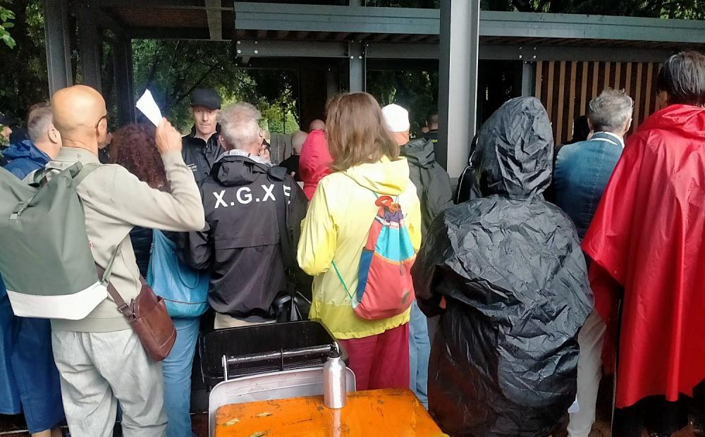 Spettatori all’ingresso (chiuso) del Bassano Music Park. Foto Alessandro Tich