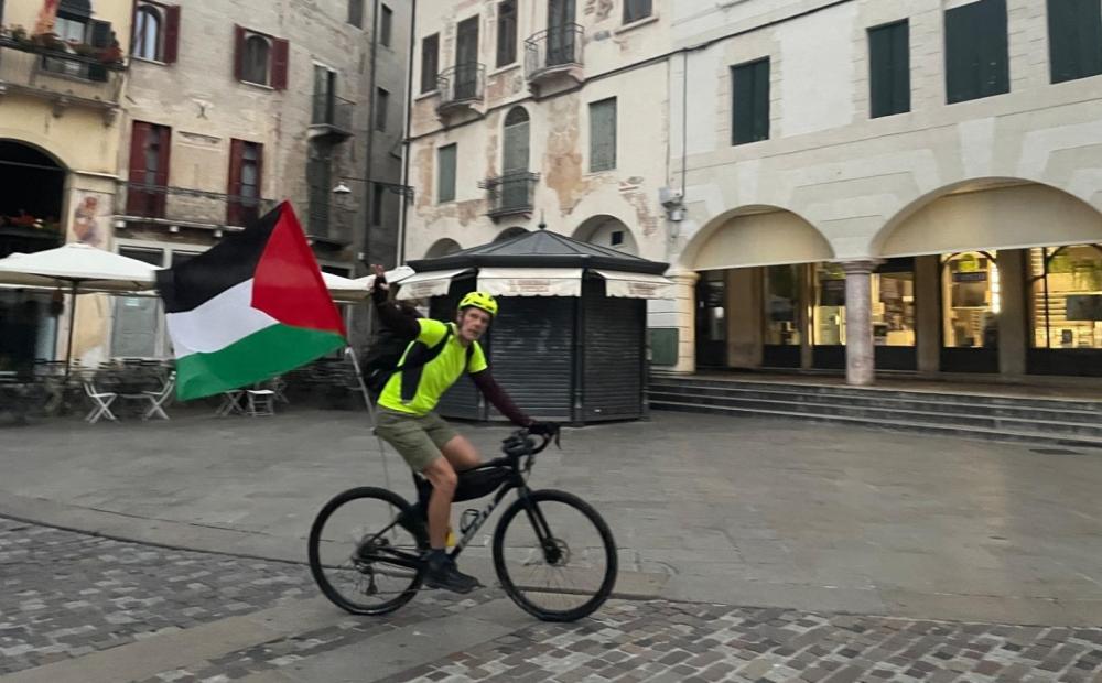 “Bassano-Venezia in bici per Gaza”. Il consigliere Renzo Masolo va in consiglio regionale su due ruote a sostegno della causa palestinese. “Porto la voce di tutti i cittadini che chiedono la fine del genocidio e una Palestina finalmente libera”