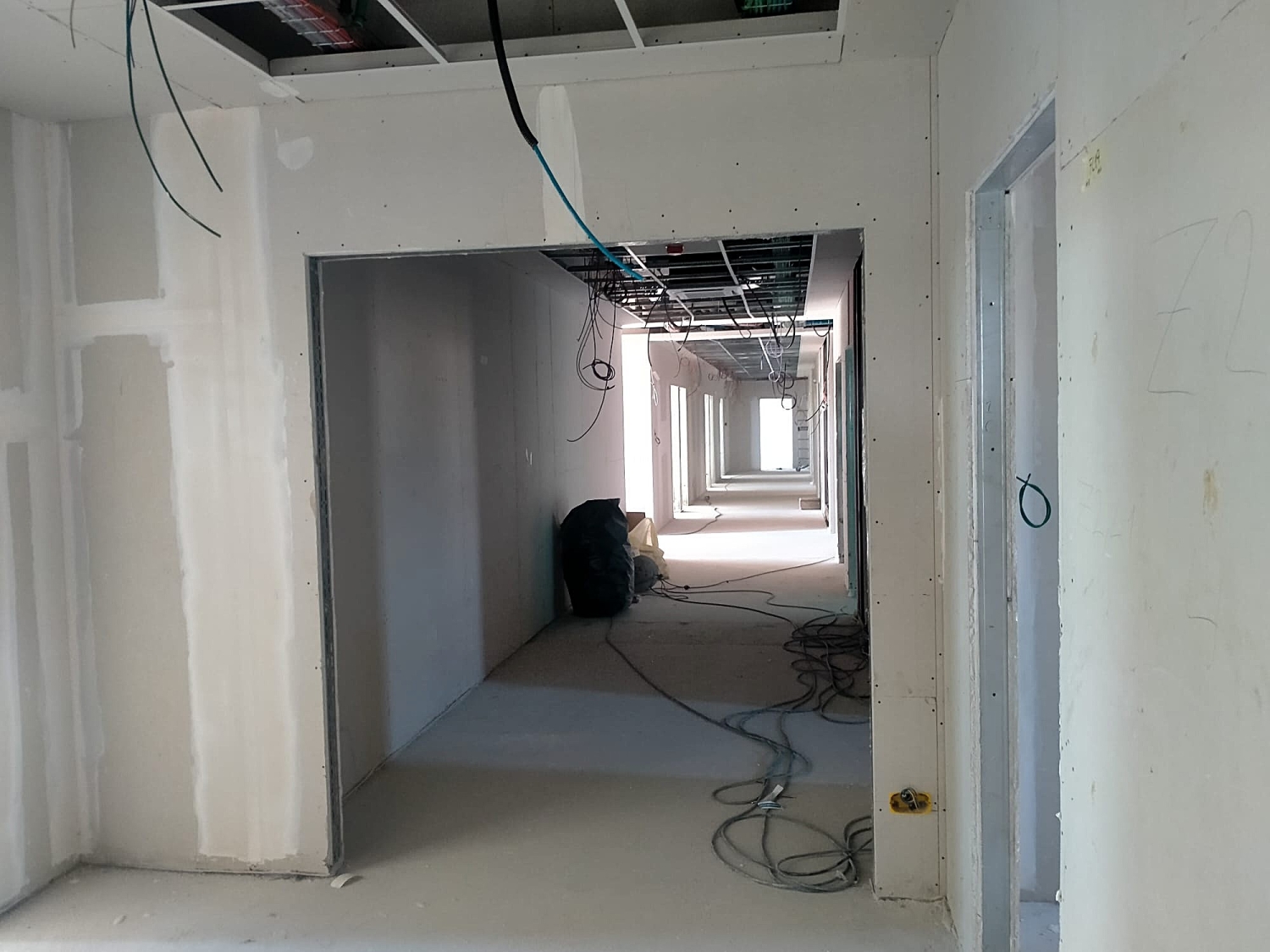 Si sta procedendo con la posa dei controsoffitti, con le tinteggiature delle stanze di degenza e con le opere di finitura dei bagni ristrutturati.