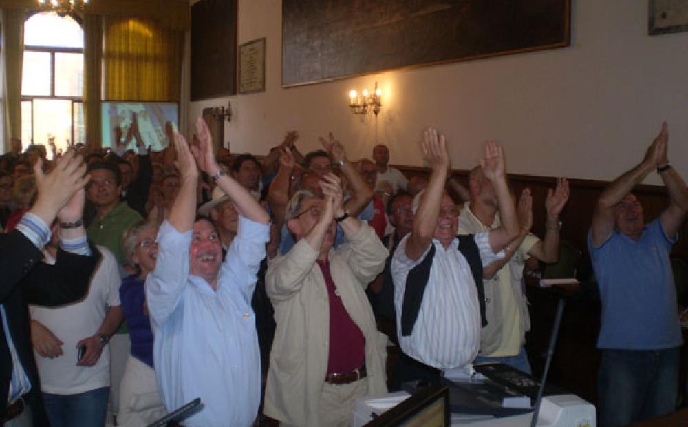 I supporters di Stefano Cimatti esultano in Municipio alla proclamazione della vittoria