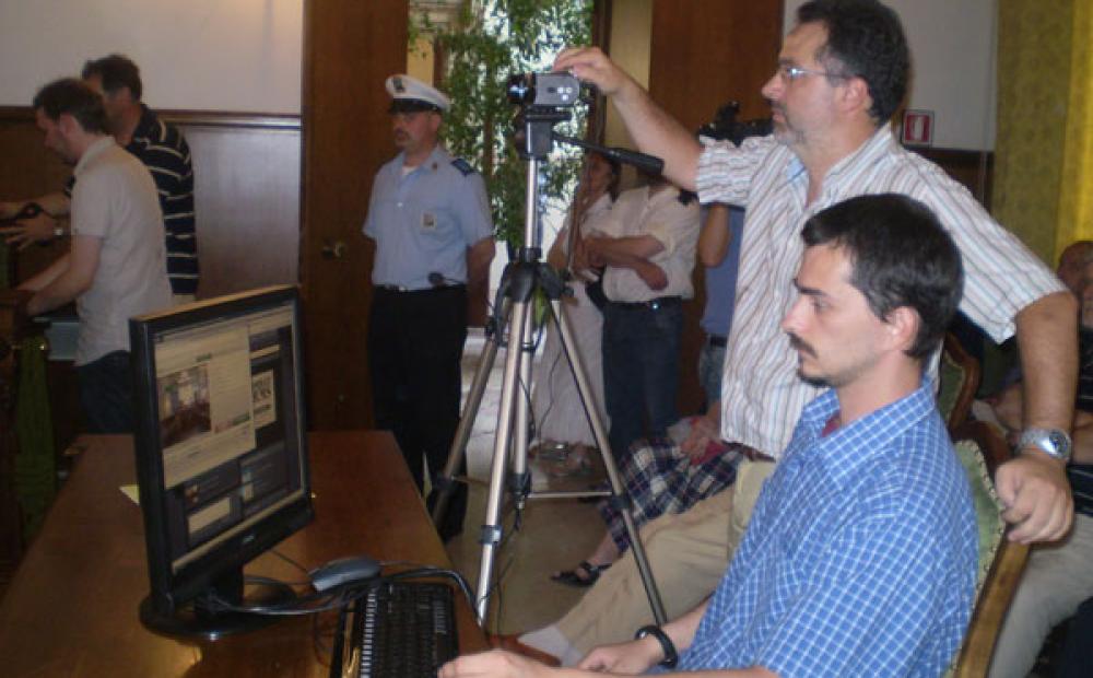 Questo pomeriggio in sala consiliare, nella seconda seduta del consiglio comunale della nuova amministrazione, è stata allestita una postazione web-cam per i primi test di ripresa, a cura dei tecnici del CED del Comune.
