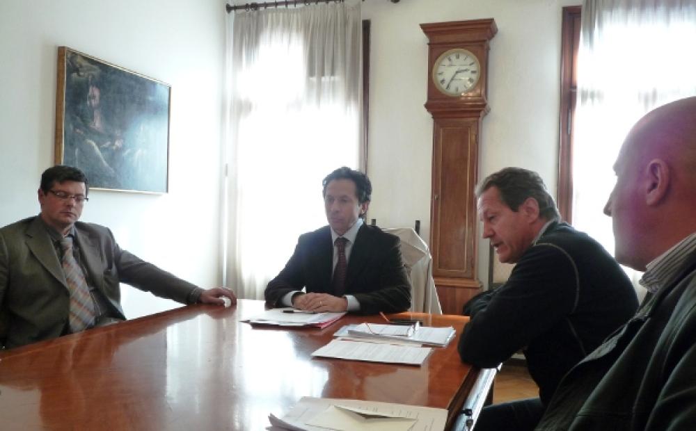 Un momento della conferenza stampa. Al centro il capogruppo del PdL bassanese Stefano Monegato