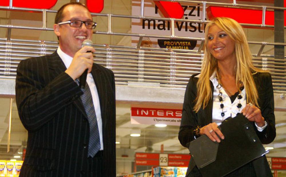 Franco Paterno, responsabile marketing del Gruppo Paterno, e la presentatrice Sonia Leonardi alla cerimonia inaugurale del "Grifone Shopping Center" (foto Roberto Bosca)