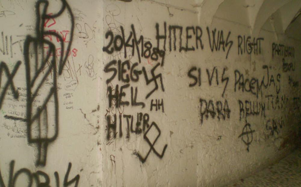 Blitz di ignoti nella notte a pochi metri dal Ponte degli Alpini. Accanto a graffiti inneggianti a Hitler, ad Auschwitz e alla Shoah, scritte anche pesanti frasi contro la Lega Nord