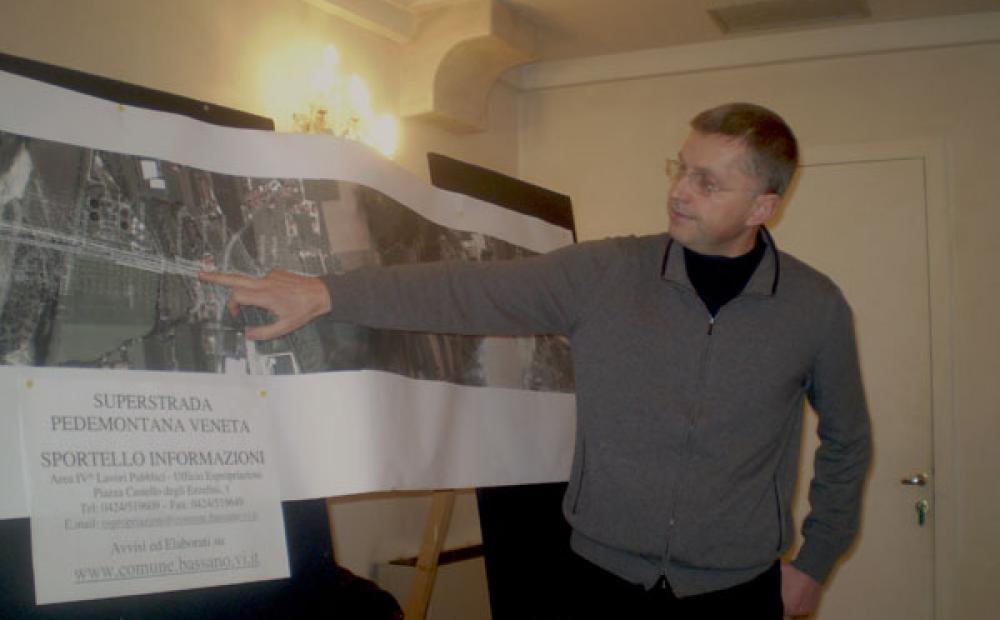 L'assessore comunale Dario Bernardi illustra i problemi del tratto bassanese della SPV