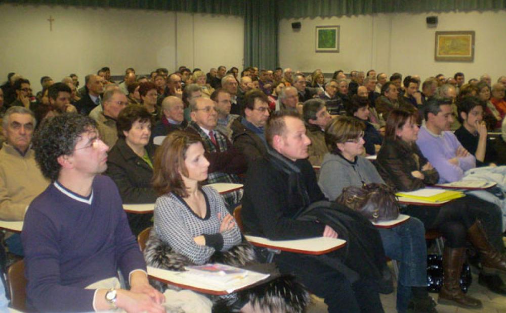 Il folto pubblico all'assemblea sulla Pedemontana al Liceo "Da Ponte"