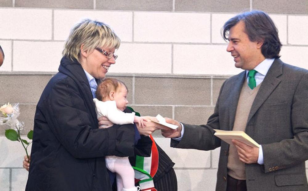 L'assessore Ronchi consegna il "Bonus Bebè" a una mamma di Romano