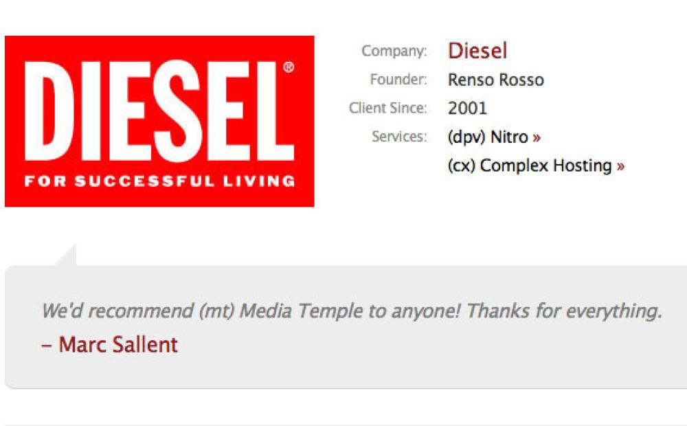 La scheda sulla Diesel sul sito di Media Temple