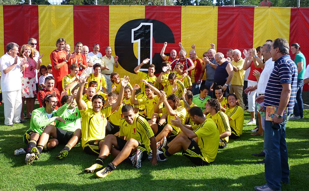 Un tuffo al cuore lungo cinque anni. Le informazioni ufficiose non sono riuscite a rendere meno incantevole un momento che moltissimi sportivi aspettavano da una vita (calcistica): volti trasfigurati da una felicità chiusa e messa in un angolo per tanto, troppo, tempo e finalmente libera di esplodere libera. C1, la tanto agognata e inseguita C1. Sempre sfiorata, sempre li ad un passo ma mai realmente afferrata e assaporata. Beh il momento è arrivato ed è dolcissimo. Promozione questa dedicata prima di tutto a chi l’ha resa possibile: Renzo e Stefano Rosso in primis con la preziosa collaborazione di Roberto Masiero. Sono le 17:10 quando dagli uffici della Lega Pro arriva l’ufficialità: quasi istantaneo l’abbraccio tra la squadra e i numerosi supporter accorsi in quel di Sant’Eusebio. Un successo particolarmente sentito e dedicato prima di tutto ad una Società che si è dimostrata ancora una volta molto più che encomiabile. “E’ il giusto riconoscimento per anni di impegno, volontà e correttezza da parte della proprietà del Bassano – spiega l’Assessore allo Sport della città giallorossa Alessandro Fabris – un successo che non può che non rendere orgogliosa e fare bene all’intera città. La famiglia Rosso ha permesso tutto questo, la loro voglia e la loro passione sono imprescindibili e permetteranno a questa squadra di partecipare ad un campionato incredibilmente affascinante”. Gli fa eco l’ex sindaco Gianpaolo Bizzotto, anche lui da anni assiduo frequentatore dello stadio cittadino: “Mi piacerebbe che non venissero fuori discorsi tipo che è stata comprata C1. Qui ci sono state fior fiore di squadre che avrebbero meritato anche prima il salto di categoria. È una soddisfazione che dev’essere condivisa da tutti gli sportivi bassanesi, perché questa squadra è un patrimonio di tutti, com’è stato in passato per la promozione del Volley o la vittoria dell’Infoplus Hockey 54”. Esausti ed entusiasti anche due volti storici dei “Fedelissimi”. Onofrio Gheno e Gianantonio Bertoncello. Il primo stenta ancora a crederci: “Sono al settimo cielo. Fino all’ultimo non ho voluto crederci. Bassano inserito nel girone del Nord? E’ tutta la vita che aspettavo questa stagione, non mi sarei fermato nemmeno di fronte a trasferte come Taranto o Siracusa”. Il secondo corre indietro con la mente di qualche mese: “E’ incredibile quante situazioni particolari siano capitate quest’anno. Per un certo periodo abbiamo addirittura temuto di rimanere senza calcio e invece eccoci qua a commentare la Prima Divisione. Pazzesco! Questa promozione è la giusta soddisfazione per cinque anni di impegni, fatiche e voglia di andare oltre da parte di dirigenti, allenatori, tifosi e non ultimi i tanti giocatori che hanno vestito questa maglia”.