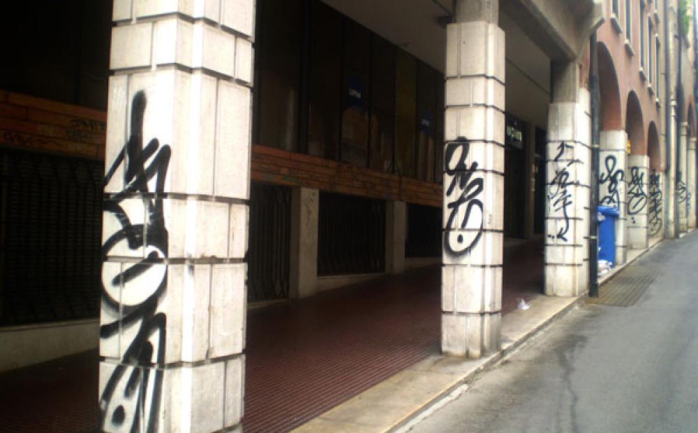 Via Portici Lunghi, una delle zone più imbrattate della città