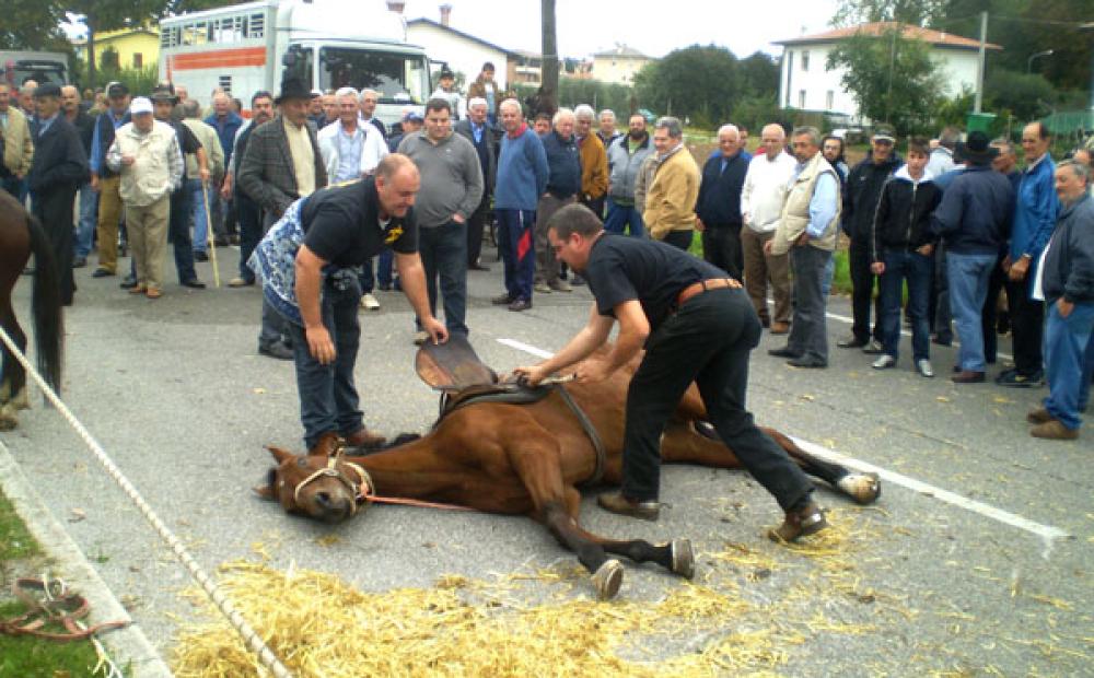 Alla Fiera Franca un cavallo stacca di netto la corda che lo legava e accenna alla fuga tra la folla. Bloccato a terra, è stato ricollocato al suo box