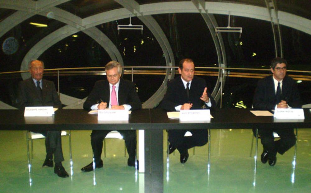 Giuseppe Nardini, Moisès Naìm, Alberto Bovo e Gianni Riotta alla presentazione del convegno alle "Bolle" di Nardini