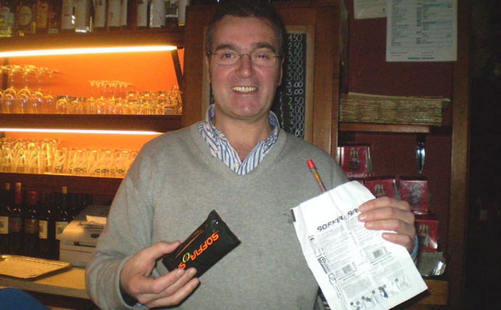 Il presidente della categoria baristi dell'Umce Tiziano Ferronato con i nuovi kit monouso per l'alcoltest volontario