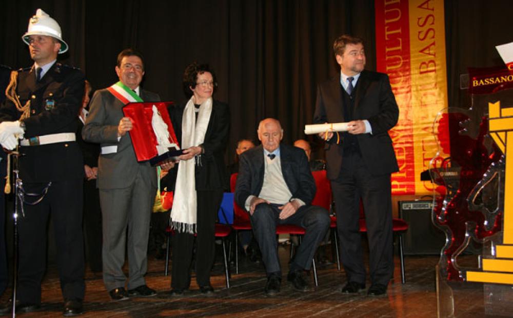 Che ha la figura autorevole e monumentale del prof. Giambattista Vinco Da Sesso - destinatario, assieme alla moglie Livia Alberton, del “Premio Cultura Città di Bassano” - salito sul palco nonostante le condizioni di salute lo costringano a camminare, lentamente, con un bastone.