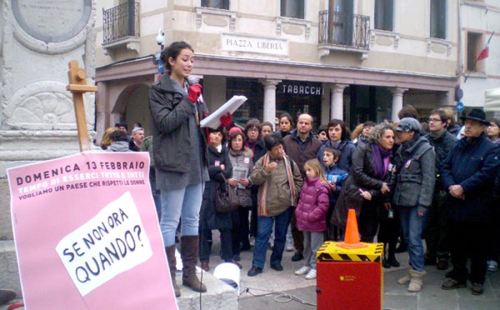 E' il momento clou di “Se non ora, quando?”, la giornata di mobilitazione popolare che vede anche Piazza Libertà a Bassano tra le oltre 230 piazze italiane coinvolte nella grande kermesse “per la dignità delle donne”, promossa a livello nazionale dal movimento spontaneo dei comitati per alzare la voce e soprattutto la testa contro il “modello Ruby” che sta degradando la vita pubblica, e non solo politica, del Paese.