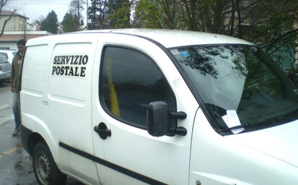 Il furgone postale nel parcheggio delle Poste con la multa appena appioppata sul parabrezza