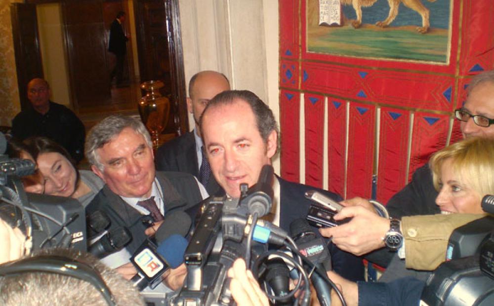Il governatore veneto, nell'incontro della giunta regionale con la stampa, interviene sull'emergenza in Libia. Ciclo idrico integrato e rifiuti: l'assessore Conte annuncia l'abolizione degli ATO