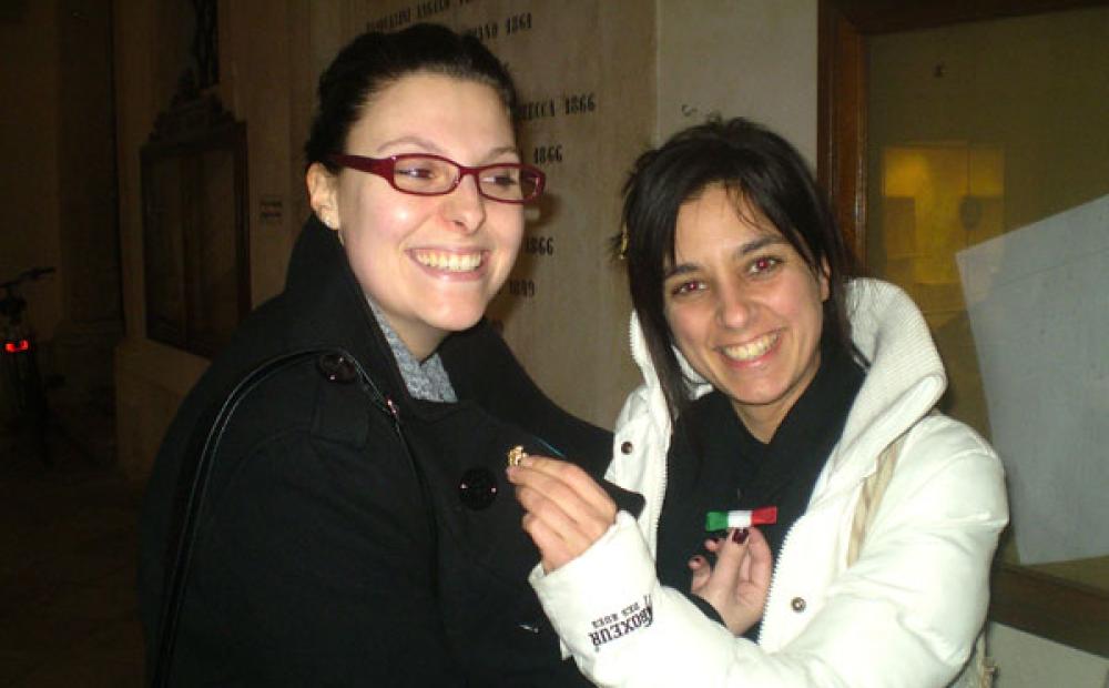 Ad attenderli all'ingresso del municipio, come annunciato ieri, trovano un gruppetto di ragazzi con un mucchio di spillette tricolori. Sono i Giovani Democratici (young boys del PD) che per celebrare il 150° anniversario dell'Unità d'Italia hanno pensato di regalare a ciascun consigliere e componente di giunta il piccolo gadget verde-bianco-rosso.