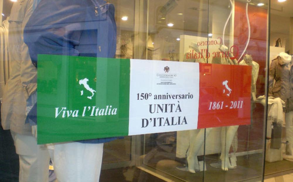 Ma anche il “minimo sindacale patriottico” rappresentato dall'affissione tricolore all'ingresso del negozio è un segnale di partecipazione diretta alla ricorrenza.
