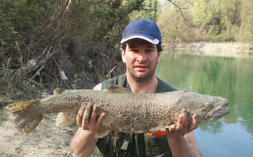 Massimo Milani e la trota-record. La preda si è prontamente ristabilita una volta reimmessa in acqua