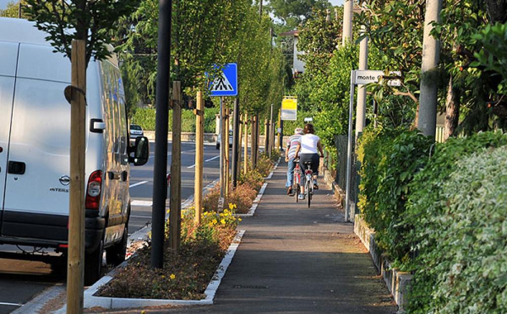 Sempre secondo l'associazione, la situazione in viale Montegrappa è aggravata dalla mancanza di una pista ciclabile che spinge i cittadini - come testimoniato da un'immagine - a pedalare sul marciapiede.