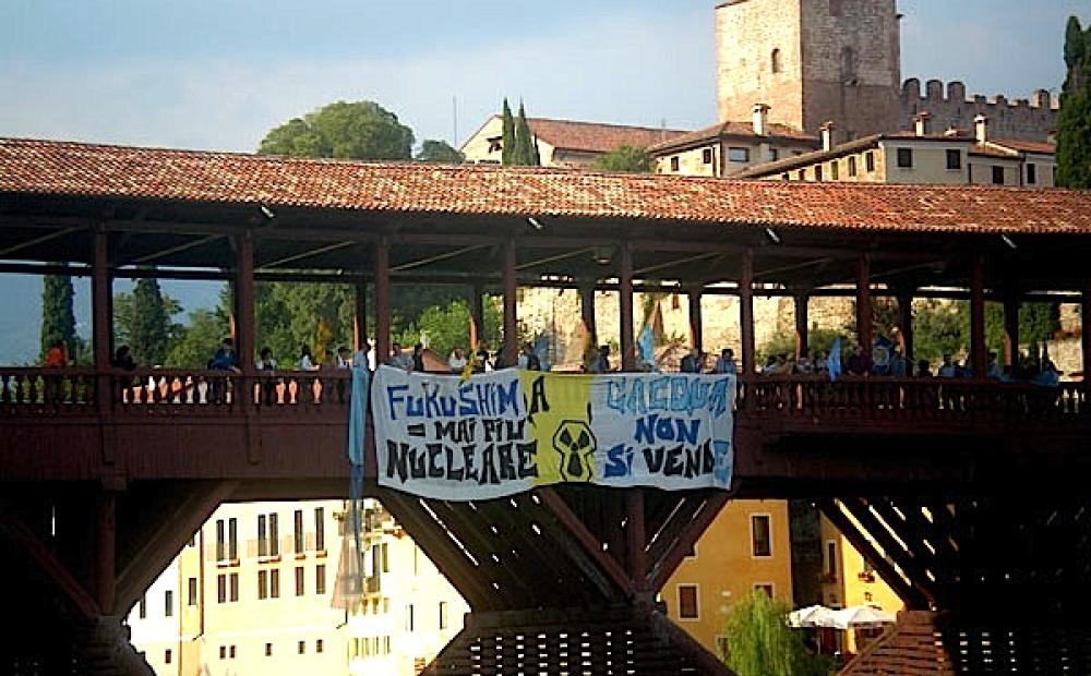 Ore 19: a Bassano del Grappa, in concomitanza con la chiusura della campagna per i referendum di domenica 12 e lunedì 13 giugno, il Ponte degli Alpini viene pacificamente invaso dagli esponenti del coordinamento bassanese dei comitati referendari “AcquaSole”.