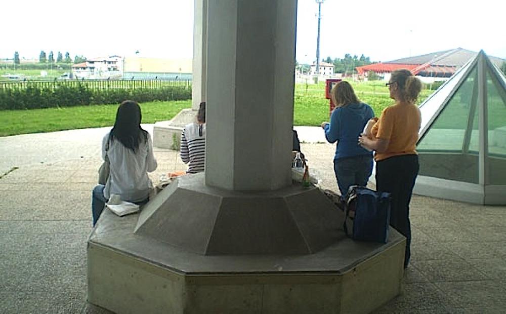 E così, l'unica soluzione per le addette alle prenotazioni ospedaliere è quella del “fai da te”: qualche cibo portato da casa da mangiare in fretta in qualche posto di fortuna. Perché, come ci dicono ancora le dirette interessate, “non ci hanno dato neanche una sala dove mangiare.” Il luogo prescelto per il pasto volante è attualmente l'area esterna al bar dell'Ospedale, dove il gruppo delle operatrici di turno si dà appuntamento ogni giorno a mezzogiorno sul basamento di una colonna. “Per il momento va bene - affermano -, ma d'inverno come faremo?”.