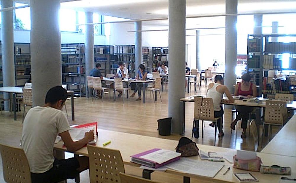 I primi studenti nella sala principale di consultazione della Biblioteca Civica di Bassano (foto Alessandro Tich)