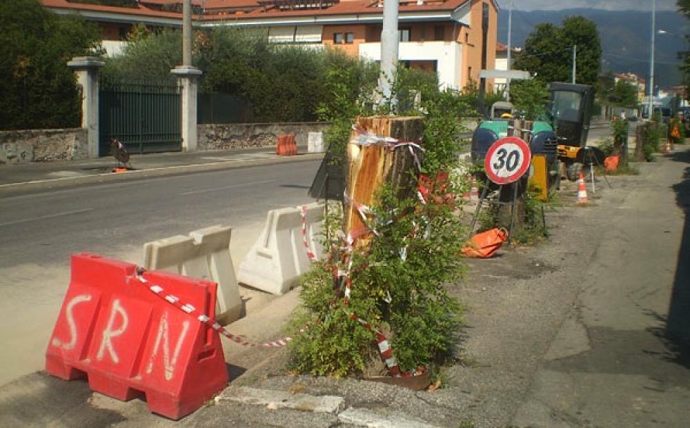 Nossignori: sono quelle che pubblichiamo nella foto correlata a questo articolo. L'abbiamo scattata oggi in viale XI Febbraio e raffigura uno dei tanti cantieri aperti contemporaneamente in città. Con i vecchi alberi del viale rimasti mozzati, attorniati dalla vegetazione spontanea nel frattempo ricresciuta e dalle strisce e dai “new jersey” che delimitano l'area dei lavori. Un po' più indietro le macchine operatrici, ferme per il weekend e pronte a ripartire da lunedì prossimo, con progressivi e temporanei restringimenti della carreggiata a cui gli automobilisti si sono ormai abituati per tutto il corso dell'estate.