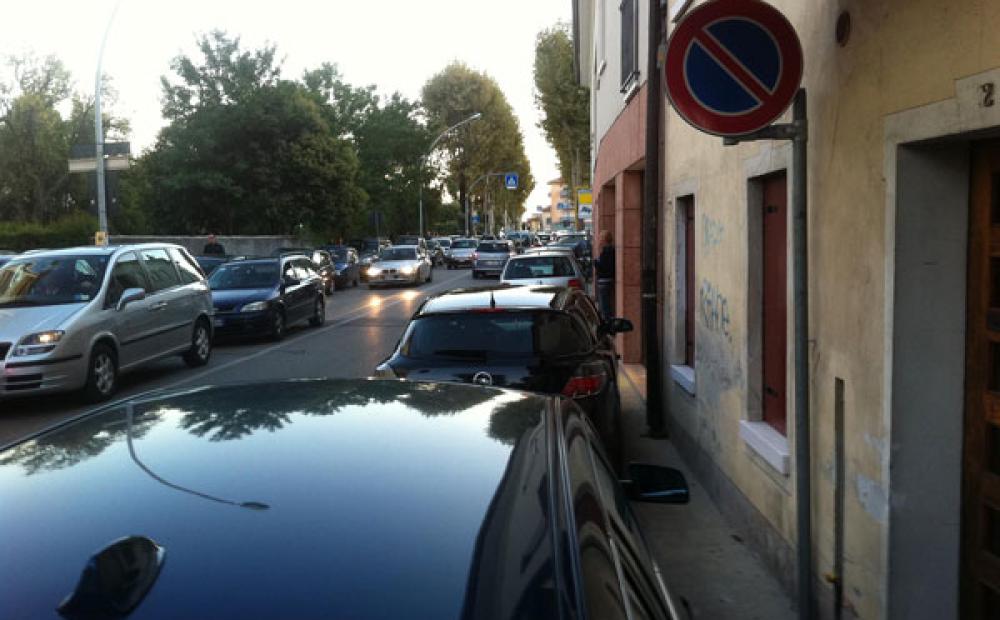 L'immagine è stata scattata durante il week end della Fiera Franca, e documenta l'assalto al parcheggio, non necessariamente regolare, in occasione della manifestazione.