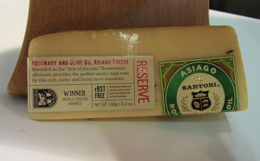Si tratta - come emerge chiaramente dalle foto scattate nel corso della fiera - non soltanto di prodotti illecitamente proposti in commercio ma anche dall’aspetto e dagli ingredienti improbabili per un Asiago DOP. Tra gli ingredienti del formaggio “made in USA” figurano, infatti, rosmarino ed olio di oliva.
