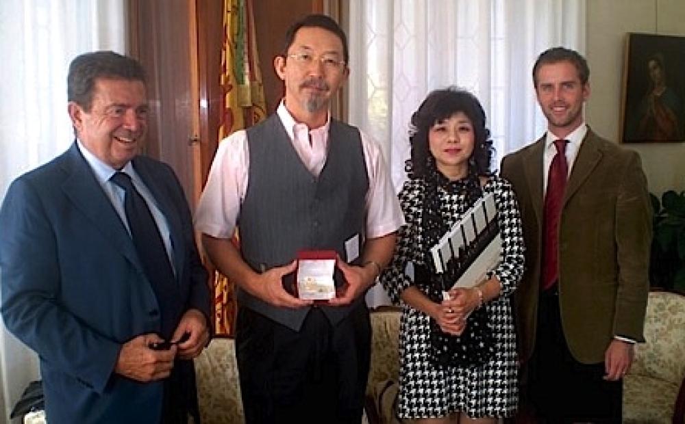 La visita in municipio del Premio Cultura Cattolica 2011 Etsuro Sotoo, scultore della “Sagrada Familia” e erede spirituale di Antoni Gaudì. Che parla in spagnolo col sindaco Cimatti e si dice "sorprendido" della nostra città