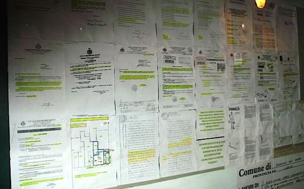 Da ieri infatti la vetrina del locale è tappezzata di carte: tutte fotocopie di atti -richieste, permessi, accertamenti, autorizzazioni - che hanno accompagnato l’iter dei lavori, e in particolare degli scavi nell’interrato, dal 2001 al 2010 e che la proprietà dell’immobile ha deciso di rendere pubblici sull’improvvisata bacheca.
