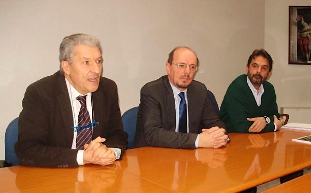 Il direttore generale dell'Ulss 3 Valerio Alberti, il preside del Liceo Brocchi Gianni Zen e il dr. Maurizio Sforzi, responsabile del Dipartimento di Prevenzione, alla conferenza stampa convocata d'urgenza questa mattina al San Bassiano