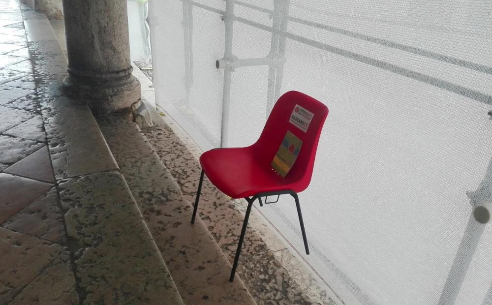 Quella sedia con le gambe posteriori illusoriamente a mezz'aria ha un valore fortemente simbolico, perché di careghe in bilico ci siamo ampiamente occupati nelle scorse settimane, durante la lunga fase delle trattative a porte chiuse ma a indiscrezioni aperte per il rimpasto della giunta comunale di Bassano. È stato come se, a turno, gli assessori più chiacchierati della giunta Pavan siano stati invitati a sedere su quella sedia rossa a mezza altezza tra i gradini e il nulla per vedere chi per primo ruzzolava a terra, davanti alla commissione giudicatrice presieduta da Nicola Finco. Alla fine è toccato a Stefania Amodeo, assessore esterno al Turismo, Attività produttive e Lavoro che ha pagato il pegno - secondo voci altamente accreditate - di un progetto di sviluppo turistico per Bassano che non trovava il gradimento degli operatori turistici della città, in quanto non coinvolti nell'elaborazione del piano. Da qui il nuovo significato che si potrebbe attribuire all'installazione artistica “Sospensione n.1”: “Metafora della condizione di assessore comunale, perennemente in equilibrio instabile tra assetti politici interni e pressioni esterne”.
