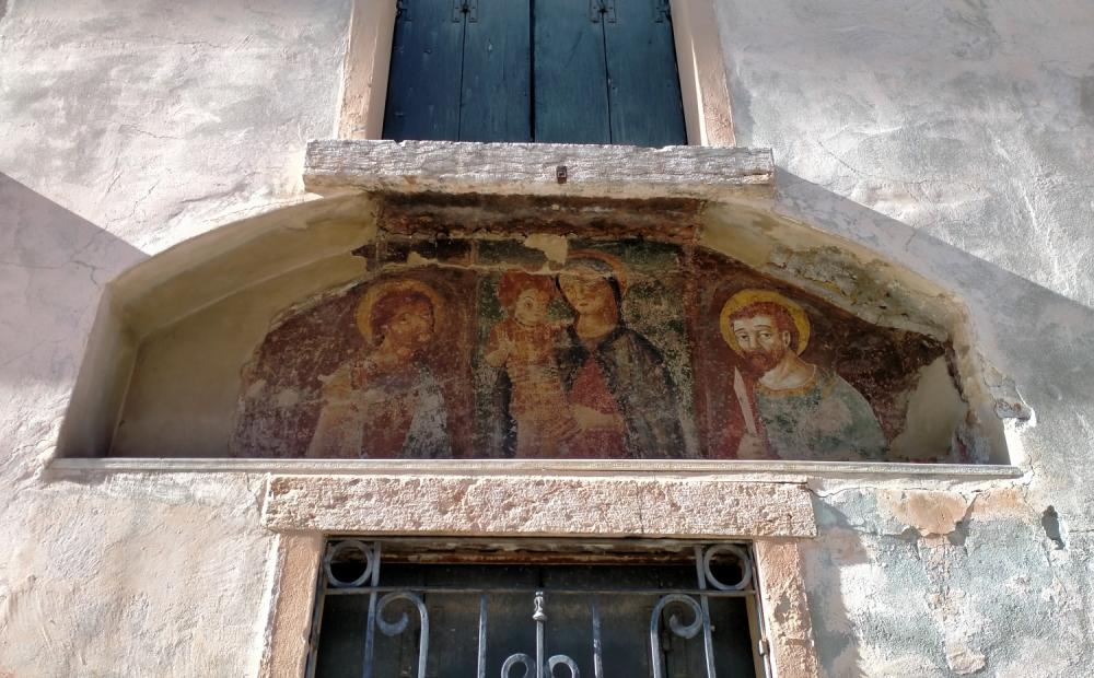 La lunetta dipinta quattrocentesca dell'antico ospizio pubblico 'Ca' di Dio' in via Barbieri (archivio Bassanonet)