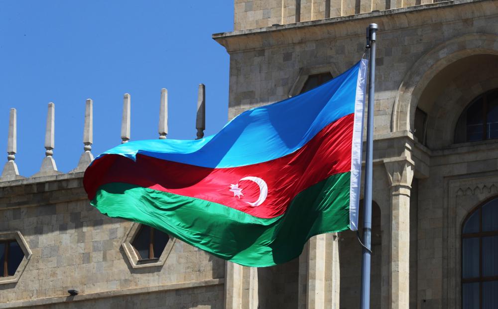 Bandiera dell'Azerbaigian a Baku, capitale dell'Azerbaigian.