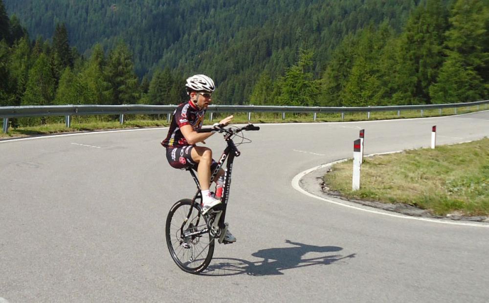 Con “metà” bicicletta scala il Passo Giau. Singolare impresa portata a termine da Simone Temperato, alias Magico Tempe
