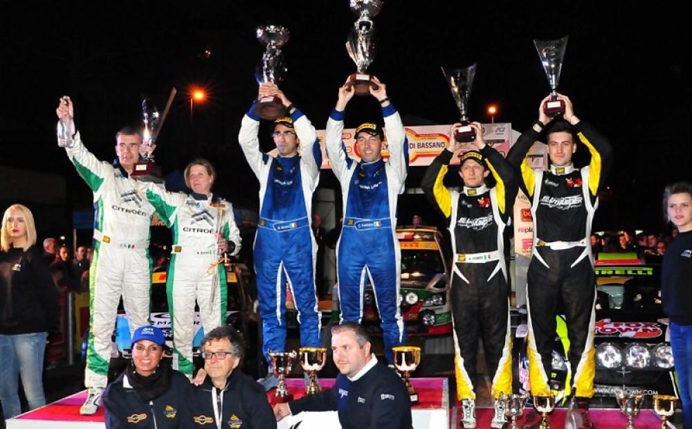 E così è stato. Il palco d’arrivo del 30° Rally Internazionale Città di Bassano ha accolto i vincitori della gara e anche del titolo. Corrado Fontana e Nicola Arena hanno stappato una bottiglia di spumante dal gusto particolare perché frutto di una gara condotta fin dall’inizio con grinta e conclusasi nel migliore dei modi con la conquista tra l’atro anche del quarto titolo IRC per il pilota comasco (il portacolori della Thunderbird si era già imposto nelle edizioni 2002, 2005 e 2006).