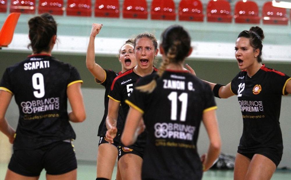 Nell’ultima serata al PalaBruel prima delle festività natalizie il Brunopremi.com regala a sé stesso e ai suoi tifosi una serata di grandi emozioni e una gioia incontenibile: nel pronostico della vigilia infatti il match avrebbe dovuto durare un’oretta e terminare con un netto 0-3 in favore della quotata squadra ospite, sin qui autentica dominatrice del torneo con otto vittorie in otto incontri. Invece il Le Ali Padova ha dovuto sudare le proverbiali sette camicie per avere ragione di un Bassano mai domo e capace di accarezzare addirittura il sogno di una clamorosa vittoria. Sul 2-1 in favore della squadra di Malinov però le padovane hanno giocato da capolista e per un coraggioso Brunopremi.com non è rimasto che "accontentarsi" di un punto comunque prezioso per la classifica proprio perché insperato. L’unica altra squadra che sin qui era riuscita a strappare un punto al Le Ali era stato alla terza giornata il Millennium Brescia, attualmente quartultimo con un punto in più delle bassanesi terzultime: e guarda caso sabato prossimo si gioca proprio un Brescia-Bassano importantissimo per la corsa salvezza.