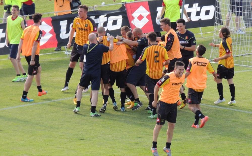 Iocolano travolto dopo aver realizzato il rigore decisivo. Con passo calmo e sguardo fiero si è avvicinato al dischetto. Furlan: "Sapevo che non avrebbe sbagliato"