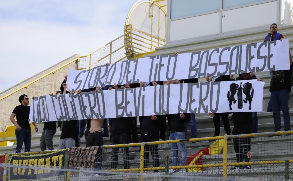 La dedica del Gruppo Grappa per la scomparsa di Calimero, storico supporter giallorosso (foto Alberto Casini)